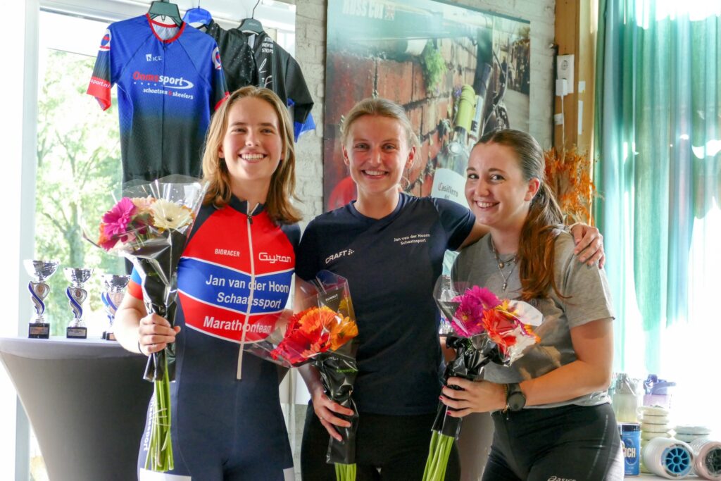 Eén ronde later kwamen de nummers 2 en 3 bij de dames over de streep. Dit waren Juliëtte vd Berg en Mariska van Zon.